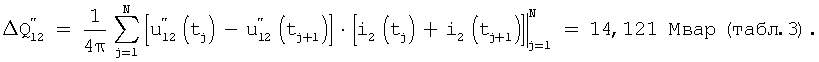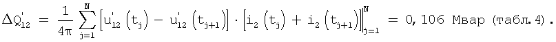 С выхода первого интегратора 11 значение потери реактивной мощности поступало на вход первого перемножителя-делителя 12. В то же время с помощью второго перемножителя 17 определяли произведения текущих значений сигналов и i1(tj), которые поступали на вход второго интегратора 18. С помощью второго интегратора 18 определяли потери активной мощности