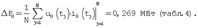 Перемножали текущие отсчеты сигналов и определяли потери активной мощности P0 на поперечном активном сопротивлении R0 линии электропередачи: