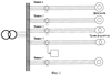 Для схемы (фиг.3) имеем восемь независимых контуров. Размещение полюсов и нулей для случая повреждения в середине линии показано на (фиг.6). Номер узла (фиг.6) соответствует номеру контура на (фиг.3), а номер нуля соответствует номеру узла.