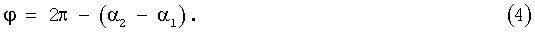 1, 2 – измеренные угловые расстояния между направлением, принятым за начало отсчета угла поворота вращающейся антенны, и направлениями, соответствующими экстремумам доплеровского сдвига частоты.