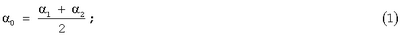 1, 2 – измеренные угловые расстояния между направлением, принятым за начало отсчета угла поворота антенны, и направлениями, соответствующими экстремумам доплеровского сдвига частоты.