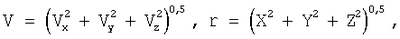 где v=(vx 2+Vy 2+vz 2)0,5; r=(х2+у2+z2)0,5;