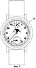 Известны тонкие наручные часы с календарем и с жестким креплением циферблата к основной пластине фирмы Сейко Инструментс, Инк. (JP), снабженные колесом установки календарного корректора, которое расположено на стороне циферблата основной пластины и которое колеблется, имея центр вращения во второй области, с целью корректирования индикатора даты и корректора для дня недели, которые также снабжены средством нормализации даты, которое расположено на стороне циферблата основной пластины для нормализования индикатора даты в третьей области, средством нормализования индикатора дня недели, для нормализования звездочки дня недели во второй области или третьей области, и средством приведения в действие индикатора даты и средство приведения в действие индикатора дня недели, имеющее центр вращения в четвертой области. При этом переводной рычаг и заводной рычаг расположены на стороне, противоположной циферблату на основной пластине [4].