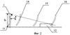 На осциллограмме, изображенной на фиг.4, имеются два характерных участка 17 и 18, на которых имеет место существенное изменение амплитуды СШП сигнала, отраженного от сцепки локомотив-платформа-цистерна. Первый характерный участок 17 соответствует прохождению через пространственную границу, соответствующую установленному стробу дальности, локомотива, а второй участок 18 – прохождению торцевой части цистерны.