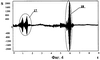 на фиг.4 – осциллограмма доплеровского сигнала, отраженного от движущейся железнодорожной сцепки локомотив-платформа-цистерна;