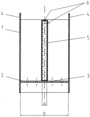 Внутренний диаметр d цилиндрической вставки 5 выбирают путем решения оптимизационных задач. Величина диаметра зависит от степени выгорания 235U в твэлах, наличия в кюбеле посторонних предметов, расстояния между кюбелями в бассейне, температуры воды и лежит в пределах от 0,12 D до 0,66 D, где D – внутренний диаметр кюбеля.