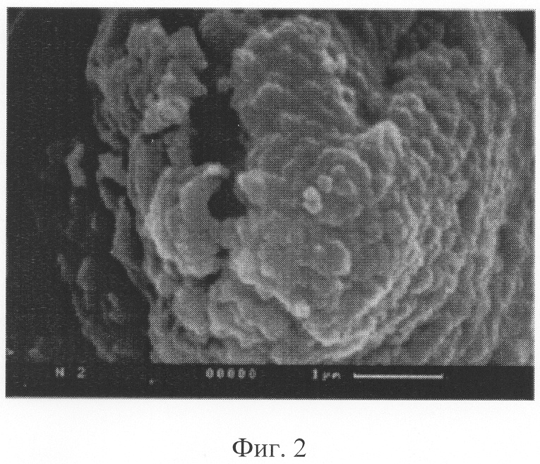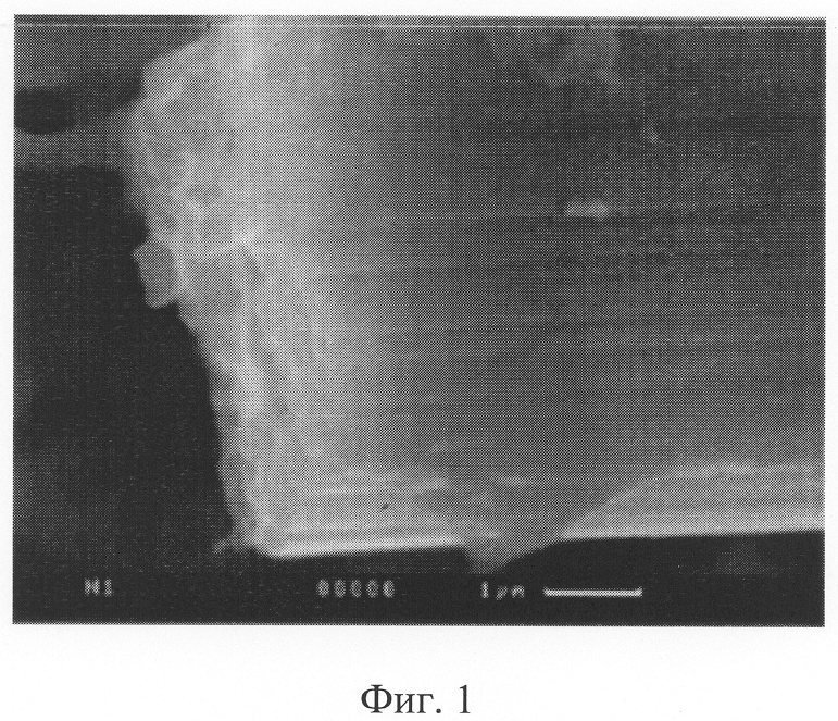 При сравнении фотографий, полученных на сканирующем электронном микроскопе с максимальным пространственным разрешением 20 и представленных на фиг.1, 2, отчетливо видны следы плавления и движения расплавленного графита по поверхности эмиттера.