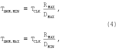 Эта величина постоянно изменяется по случайному закону в диапазоне TШИМ.MIN-ТШИМ.МАХ, определяемом диапазоном DMIN-DMAX: