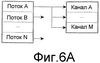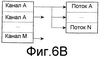 На фиг.6А изображен список каналов А, В, … М для Потока А в СПШУ, в качестве примера, из числа возможных списков каналов, по которым передаются соответствующие Потоки. На фиг.6В изображен список Потоков А, В, … N для канала А в СПШУ, в качестве примера, из числа возможных списков Потоков, передаваемых по соответствующим каналам. На фиг.6В изображено, какие Потоки передаются по конкретному каналу. В данном случае, один BCMC_FLOW_ID для конкретного Потока должен быть выбран, чтобы создать МОДК для конкретного канала. В качестве способа выбора BCMC_FLOW_ID может быть выбран самый верхний BCMC_FLOW_ID или самый нижний BCMC_FLOW_ID. Например, если выбирается самый верхний Поток, как изображено на фиг.6А, выбирается BCMC_FLOW_ID для Потока А.