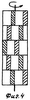 Зерносоломистый ворох, скошенный жатвенной частью или собранный подборщиком, направляется внутрь комбайна и поступает в зазор, образованный барабаном и подбарабаньем (не показано), где под действием крутящего момента, передаваемого через вал 2, ступицы 4, круглые пластины 3, кольца 5, подбичники 7 и бичи 6, зерновой ворох сжимается, обмолачивается и протаскивается по поверхности подбарабанья, выполненного из поперечных планок и продольных прутьев, образующих отверстия (не показано). В результате воздействия бичей барабана и планок подбарабанья зерно выделяется из соломистого вороха на очистку и подается в бункер, а соломистый ворох направляется на соломотряс для выделения остатков зерна. При уборке высокоурожайных, особенно зерновых культур с повышенным содержанием соломистой массы возникают большие энергетические затраты на привод молотильного барабана. Для снижения крутящего момента на валу барабана, уменьшения вибраций и уменьшения пиковых нагрузок на барабан целесообразно бичи с подбичниками разделить на части, равные количеству секций барабана, и сместить их друг относительно друга так, чтобы момент сжатия массы между бичем и планкой подбарабанья был непрерывным, но на меньшей длине бича с подбичником. Это достигается тем, что бичи с подбичниками каждой секции смещаются друг относительно друга, как показано на фиг.3, 4, 5, 6, 7 и 8. Для переоборудования барабана по одной из схем расположения, изображенных на фиг.1, 3, 4, 5, 6, 7 и 8, возможны два варианта: переставляются подбичники 7 с бичами 6 по отверстиям 8 колец 5 и в новом положении закрепляются по выбранной схеме или поворачиваются кольца 5 внутри секций вместе с закрепленными на них бичами 6 с подбичниками 7 и в новом положении закрепляются в отверстиях 9. Количество бичей 6 и шаг отверстий 8 и 9 в кольцах 5 подбирается таким образом, чтобы смещение бичей было равно ширине рабочей поверхности бича. Выбор схемы расположения бичей зависит от формы и объема зерносоломистой массы, поступающей в зазор между барабаном и подбарабаньем. Схема расположения бичей на фиг.1 может использоваться при поступлении равномерного по ширине зернового вороха с невысоким содержанием соломы. Схема расположения бичей по фиг.3 и 7 используется при поступлении большего объема вороха по центру барабана для «расталкивания» массы к краям, а схема по фиг.4 и 8, наоборот, когда по центру барабана поступает меньше вороха и его нужно сместить с краев к центру. Схема расположения бичей по фиг.5 и 6 используется, когда больший объем вороха поступает к левой или правой стороне барабана.