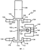 Из числа всех остальных элементов этой тележки 128 на фиг.1 помимо несущего колеса 126 показаны лишь боковые направляющие колеса 132, 134, 136 и 138, катящиеся по боковым направляющим поверхностям 108, 110, 116 и 118 соответственно, а также устройство 140 для передачи энергии, которое содержит, например, токоприемник 142, выполненный в виде П-образного ферритового сердечника с намотанной на него обмоткой 144, которая соединена с электронной схемой токоприемника (на фиг.1 не показана), обеспечивающей преобразование индуцируемого в обмотке переменного тока в постоянное напряжение.