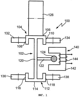 Питающая линия 124 проходит внутри ограниченного П-образным токоприемником 142 устройства 140 для передачи энергии пространства, не контактируя с этим токоприемником.