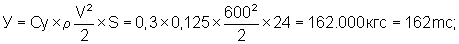 При М=1,75; =10°; рис.4.21, Су=0,3; рис.4.26, Сх=0,06; К=5;