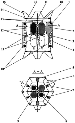 Оснащение криогенных емкостей и топливных емкостей активными разделителями фаз 13 обеспечивает в полном объеме жидкими криоагентами (жидким азотом, жидким гелием) и жидкими топливными компонентами агрегаты, научную и служебную аппаратуру автономного КА в течение всего срока его активного функционирования.