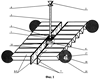 Во внутреннем объеме центрального силового элемента 1 размещен еще один электродвигатель 6, на выходном валу которого закреплены два поперечных силовых элемента 7 поперечной вилко-образной балки, входящие в состав элементов конструкции левой секции 8 и правой секции 9 СБ.