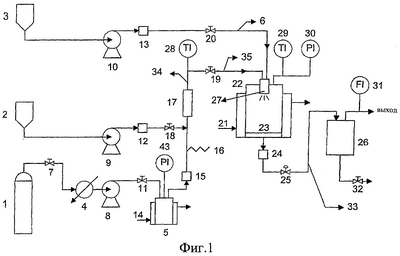 На фиг.1 изображена схематическая технологическая карта аппарата, используемого для осуществления способа, предлагаемого в изобретении.