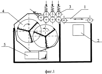 Сущность изобретения поясняется чертежами. На фиг.1 изображена схема мяльно-трепального станка для выделения волокна из тресты лубяных культур. На фиг.2 изображен горизонтальный транспортер, ход которого вперед и назад различен.