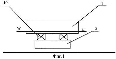 В случае необходимости установить платформу 1 на точку бурения на мелководье глубиной 1,0 – 3,0 м используют понтон-транспортировщик 3, который позволяет уменьшить осадку паромов 2 до 1,0 м (при водоизмещении паромов, близком к состоянию порожнем). Для этого понтон-транспортировщик 3 подводят под находящуюся в составе «катамарана» упомянутую платформу 1 и размещают между паромами 2. При этом понтон-транспортировщик 3 можно соединить с паромами 2 с помощью известных тросов и швартовных устройств (не показаны). Понтон-транспортировщик 3 может быть дополнительно использован как грузовая площадка, временный мост, причальная стенка.