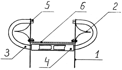Детали 3 проходят сквозь отверстия в несущих ребрах 1 и закреплены внутри соединительной трубы 4, расположенной под настилом 6.