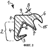 6. Эластичный уплотнитель по п.1, у которого угол ( ) между нижней поверхностью опорного ребра (7) и обращенной к нему боковой поверхностью основания (2) составляет 90° или менее.