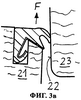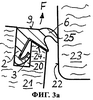 На фиг.3а показана начальная стадия взаимодействия уплотнителя с уплотняемой поверхностью, т.е. момент, в который изогнутая верхняя поверхность уплотняющей кромки 6 при закрывании двери, окна или иной аналогичной конструкции входит в начальный контакт с уплотняемой противолежащей поверхностью 22 коробки 23 окна вдоль контактной поверхности 25.