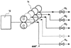 Известны различные системы подачи топлива в камеру сгорания турбомашины (см., например, патентные документы ЕР 0926325, US 5907949, US 6102001 и US 6092546). Типовая система впрыска топлива, используемая в известных решениях, схематично показана на фиг.5. Известная система впрыска топлива в турбомашине содержит насос 102, например, шестеренный с приводом от двигателя (не представлен), позволяющий отбирать топливо из топливного бака 104, набор топливных форсунок 106, расположенных в камере сгорания турбомашины и снабженных каждая топливным дозирующим клапаном 108, и дозатор 110 топлива. Данный дозатор 110 встроен между насосом 102 и клапанами 108 и предназначен для регулирования расхода топлива, которое должно подаваться от насоса к топливным форсункам. Избыточное топливо на выходе дозатора 110 вновь подается на вход насоса 102.