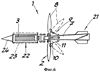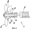 Генератор 3 может быть расположен в корпусе 22, например корпусе из полусфер с охлаждающими ребрами 23 на внешней стороне. Существует также возможность расположения нескольких генераторов 3 в ряд друг за другом и их присоединения друг к другу и к оси 7 ротора. Также в этом случае генераторы могут быть заключены в корпус. Преимущественно со стороны натекания к корпусу 22 прифланцован полый конус 24 обтекания.