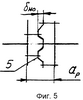Гибкая муфта для валов работает следующим образом. Крутящий момент передается от фланца 1 одной полумуфты фланцу 2 другой полумуфты пальцами 3 посредством гибких дисков обода 5. Упругий обод 5 состоит из комплекта тонких дисков и предназначен для компенсации возникающих при работе изменений длин валов, например, из-за термических расширений и несоосностей (см. фиг.3) установки валов соединяемых агрегатов. На фиг.4, 5, 6 схематически показаны деформации упругого обода муфты для компенсации возникающих при работе осевых натяжений – распоров, перекосов осей. Величина осевого натяжения но равна: