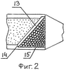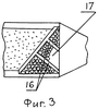На фиг.2, 3 показаны примеры конструктивных схем сопряжения осколочного блока с зарядом взрывчатого вещества. В схеме, показанной на фиг.2, заряд ВВ контактирует с осколочным блоком через диафрагму 13, опирающуюся на кольцевой уступ корпуса 14. При этом часть стенки 15, прилегающая к высокой стороне, имеет уменьшенную толщину. В схеме фиг.3 диафрагма снабжена системой ребер 16 и 17.