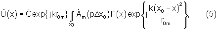 Текущее положение устройства вдоль оси x=xn, тогда экспоненциальный множитель в подынтегральном выражении формулы (5) равен