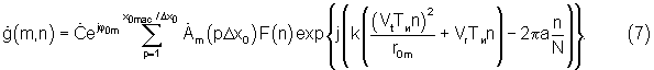 Размер синтезированной апертуры Lc VtTc=VtTиN. Тогда для m-го элемента разрешения по дальности, согласно принципу Гюйгенса-Френеля, электромагнитное поле, принимаемое устройством вдоль оси х, определяется в виде