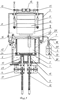 Сущность изобретения поясняется чертежами, где схематично изображены: на фиг.1 – общий вид устройства отмывки и сушки плоских стеклянных подложек; на фиг.2 – устройство отмывки и сушки, вид сбоку; на фиг.3 – положение подложек в пазах кассеты; на фиг.4 – устройство с обработанными пластинами (крайнее верхнее положение их) и открытой крышкой; на фиг.5 – толкатель группового вертикального перемещения подложек.