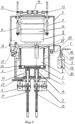 Кроме того, при открытой камере в крайнем верхнем положении на платформу устанавливают следующую кассету для обработки подложек. Но с помощью механизма вертикального перемещения кассеты сначала опускают в ванну установленную на платформе кассету, а затем через заданное время с помощью механизма вертикального перемещения подложек толкатель с подложками. Это исключает повреждение пластин при сбое в работе одного или обоих приводов механизмов вертикального перемещения кассеты и подложек.