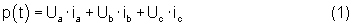 где p(t) – мгновенная мощность трех фаз линии;