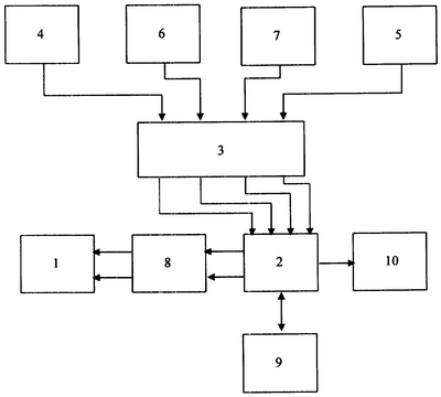 Аккумуляторную батарею, подлежащую восстановлению, подключают к выходу (выходным клеммам) блока 1 источников зарядного тока. Устанавливают датчики 4, 5, 6 и 7. С помощью процессора 7 осуществляется диагностика состояния восстанавливаемой аккумуляторной батареи, а блок 10 осуществляет отображение контролируемых параметров. В блок 9 памяти записывают параметры технологического процесса восстановления аккумуляторной батареи с учетом предварительной диагностики состояния восстанавливаемой аккумуляторной батареи. При запуске процесса восстановления аккумуляторной батареи с первого выхода дешифратора поступает сигнал на вход управления подключением источников зарядного тока, при этом выход блока 1 соединен с источником постоянного зарядного тока. В течение установленного времени осуществляется предварительный заряд аккумуляторной батареи, при этом процессор осуществляет сравнение текущих значений параметров процесса предварительного заряда аккумуляторной батареи с заданными значениям параметров, записанных в блок 9 памяти. По достижении заданных значений параметров процессор 2 вырабатывает сигнал, который через дешифратор 8 поступает на вход управления подключением источников зарядного тока и осуществляет подключение источника прямоугольных импульсов тока к выходу блока 1. Далее осуществляют заряд аккумуляторной батареи путем пропускания через нее последовательности прямоугольных импульсов тока, длительность которых в зависимости от типа и состояния батареи устанавливается в пределах от 150 до 600 мс, а пауза между импульсами составляет от 2 до 6 с, при этом амплитуду прямоугольных импульсов тока поддерживают неизменной. Текущие параметры процесса заряда аккумуляторной батареи при пропускании через нее последовательности прямоугольных импульсов тока сравнивают с заданными значениям параметров, записанных в блок 9 памяти. При отклонении параметров процесса заряда аккумуляторной батареи от заданных значений параметров технологического процесса процессор 2 вырабатывает сигнал, который через дешифратор 8 поступает на вход управления параметрами зарядного тока блока 1 и осуществляет подстройку выходных параметров источника прямоугольных импульсов тока до заданных значений технологического процесса. Процесс заряда прекращают при достижении измеряемых величин значений параметров, определяющих окончание процесса заряда батареи. Эти данные предварительно записаны в блок 9 памяти. По окончании заряда процессор 2 вырабатывает сигнал, обеспечивающий отключение источника зарядного тока от выхода блока 1. Далее осуществляют измерение емкости батареи путем ее разряда. Для этого к выводам батареи подключают нагрузку, которая обеспечивает заданную величину тока разряда. Разряд батареи прекращают при достижении значении напряжения батареи предельно допустимой величины, установленной для этой батареи, цикл восстановления аккумуляторной батареи повторяют вышеописанным способом, если емкость батареи составляет менее 80% от номинального значения.
