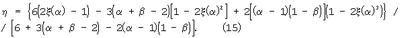 Например, для =10 имеем значения величин 2 ( )-1=0,35696, 1-2 ( )2=0,07933 и 1-2 ( )3=0,37534, так что при задании величины =0,1 получим значение к.п.д. такого устройства  =2 и =0,5 (соответствующие значения 2 ( )-1=0,16228, 1-2 ( )2=0,32456, 1-2 ( )3=0,60747) для к.п.д. получим =(6·0,16228-3·0,5·0,32456+2·0,5·0,60747)/(6+1,5-1)=1,1043/6,5=0,1699=17%. Таким образом, к.п.д устройства или, как более правильно сказать, коэффициент использования энергии магнитного поля растет с увеличением степени неоднородности поля в зазоре и при применении ферромагнитных материалов с большим отношением максимальной и минимальной относительной магнитной проницаемости (по кривой Столетова на фиг.4б), то есть с ростом отношения / .