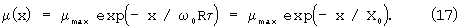 относительно неизвестной величины X* с учетом вида функции (х), которая является в данном случае однородного магнитного поля в зазоре постоянного магнита экспоненциальной функцией типа (1). В момент времени t=0, как уже было указано выше, дифференциальный объем ферромагнитного диска (кольца) с координатой x=0 имеет относительную магнитную проницаемость, обозначенную как *(0), численное значение которой достаточно близко к максимальному значению относительной магнитной проницаемости ферромагнетика *max в отсутствии магнитного поля (Н=0). Величина *(0)< *max на некоторую незначительную величину за счет того, что на отрезке  , указанном на фиг.8б, действие магнитного поля вне магнитного зазора несколько уменьшит относительную магнитную проницаемость за короткий отрезок времени  / 0R< t=Х0/ 0R, поскольку Х0 существенно больше величины отрезка  , внутри которого имеется квазиэкспоненциально изменяющееся магнитное поле (см.фиг.7). Строго говоря, с учетом фиг.2 и фиг.3 можно утверждать, что начальное действие краевого магнитного поля на участке  сначала будет увеличивать относительную магнитную проницаемость выше величины, соответствующей отсутствующему магнитному полю – стремить ее к значению max по экспоненциальному закону, и лишь затем вблизи правого края магнитного зазора постоянного магнита, когда напряженность магнитного поля станет выше НC (фиг.3), относительная магнитная проницаемость станет снижаться до величины *(0) max> *max.