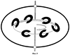 Учитывая последнее неравенство, с целью увеличения вращающего момента ферромагнитного диска (кольца) можно рекомендовать использование в заявляемом техническом решении нескольких идентичных постоянных магнитов, рассредоточенных симметрично по окружности ферромагнитного диска (кольца) так, чтобы сохранялось неравенство 2 R/N>Х0, где N – число постоянных магнитов, допускающее восстановление в ферромагнетике исходного значения относительной магнитной проницаемости min max* за время перехода фиксированного дифференциального объема ферромагнетика от одного магнита к другому, как это схематически представлено на фиг.9.