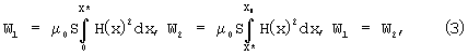 Рассмотрим действие заявляемого технического решения, представленного на фиг.1. Рассмотрим на первом этапе относительное положение центра тяготения магнитной системы, например, в магнитном зазоре (на фиг.1), то есть найдем величину ( )=Х*/Х0. Пусть пунктирная линия, восстановленная по координате х=X*, определяет поперечное сечение магнитного зазора, совпадающее с центром тяготения магнитной системы. Для нахождения этого значения X* вычислим интегралы для энергий магнитного поля в объемах зазора в интервале [0-X*] и в интервале [X*-Х0]. Приравняв значения полученных интегралов, найдем искомую величину X*: