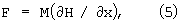 Выражение (6) учитывает как изменение напряженности магнитного поля Н(х), так и изменение относительной магнитной проницаемости (Н) ферромагнитного вещества в зазоре постоянного магнита 3 (фиг.1) по координате х. Будем для простоты расчета полагать, что величины и являются постоянными, не зависящими от координаты х, то есть работа устройства происходит на линейных участках: gradH(х)=const и grad (х)=const.