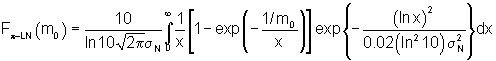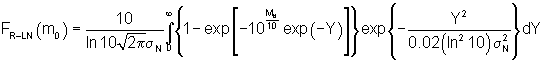 где FS представляет собой вышеуказанную функцию распределения для случайной переменной S, которая соответствует полезному сигналу. Как указано выше, эта функция представляет собой Накагами-Райса-логарифмически нормальное распределение или релеевское-логарифмически нормальное распределение, в зависимости от того, существует или нет прямой луч между излучателем и приемником. Интеграл уравнения (1) ни в одном случае не может быть выражен элементарными функциями и должен быть рассчитан численными методами.