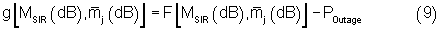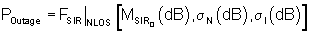Цель состоит в получении допустимого значения M(S/I) (дБ), которое для определенных статистических условий выполняет заданную спецификацию для вероятности отсутствия связи Poutage (QoS). С этой целью используют уравнения (6) и (7) для получения вероятности отсутствия связи для случаев LOS и NLOS, в результате чего получают следующие две вероятности:
