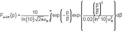 где представляет собой среднее значение, соответствующее временным релеевским вариациям, и представляет собой секторное усредненное значение, соответствующее логарифмически нормальным вариациям местоположения. Типичное значение девиации этой компоненты составляет N (дБ), которое является еще одним параметром, оценку которого производят для получения изменения условий затухания радиоэлектрического канала. Как ожидается, N=0, поскольку распределение вырождается в релеевское распределение.