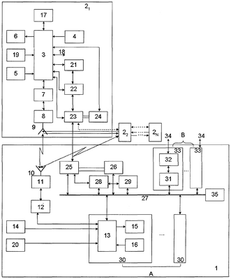 На момент подачи заявки разработаны алгоритмы и программное обеспечение заявляемой системы радиосвязи. Узлы 1-20 одинаковые с прототипом. Оборудование, реализующие функции узлов 21-35, выпускается серийно. Вычислители 3 и 13 могут быть выполнены, например, на плате процессорной 5066-586-133MHz-1 MB, 2 MB Flash CPU Card фирмы Octagon Systems и ЭВМ типа “Багет-01-07” ЮКСУ.466225.001 соответственно.