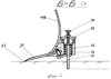 Крутящий момент от червячного колеса редуктора 5 передается на шлицы 26 на верхней части стойки 9 (см. фиг.2). Полевой обрез 27 на удаленном конце режущего элемента 19 от оси вращающейся вертикальной стойки 9 выполнен с наклоном к оси симметрии стойки 9. Угол наклона (см. фиг.2) полевого обреза 27 выполнен равным или меньше угла естественного откоса почвы из слоя верхнего горизонта 28 (фиг.2). Каждый упор 15 выполнен в виде лыжи 4, смонтирован на конце поводка 13(14) с возможностью переустановки по высоте вертикальной стойки 9.