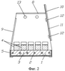 Устройство для выращивания растений состоит из основания 1 и электрической кабельной нагревательной системы, состоящей из экранированного двужильного нагревательного кабеля 2 (нагревательный элемент) с оболочкой из ПХВ изоляции мощностью от 165 до 170 Вт уложенного зигзагом в внутри основания с шагом от 60 до 90 мм, что обеспечивает равномерное распределение температуры, датчика температуры 3, электронного терморегулятора (не показан), растильни 4, расположенных на основании 1 и теплоизоляционного кожуха 5. По периметру основания 1 установлены стенки 6 и 7, соединенные в верхней части с крышкой 8. Стенка 9 установлена с зазором относительно крышки 7. Передняя стенка 10 выполнена из жесткого материала, например из поликарбоната, и имеет приспособление для регулирования величины зазора, выполненное из металлических полосок 11, закрепленных на ней, и магнитов 12, установленных на стенках 6 и 7, соединенных с крышкой 8.