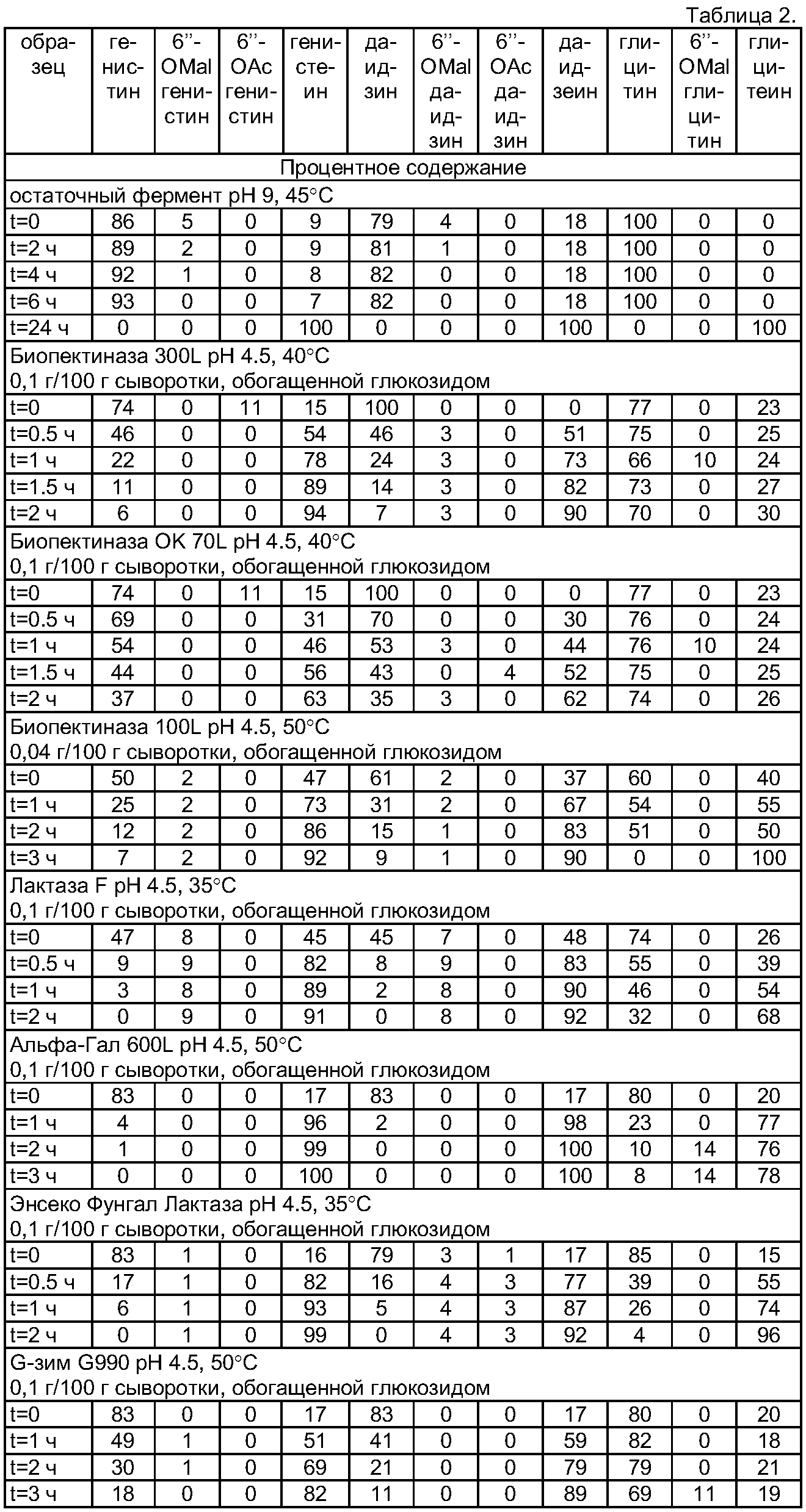 Изобретение относится к обогащенной аглюконизофлавоном растительной белковой сыворотке, сывороточному белковому материалу, материалу с высоким содержанием генистеина, материалу с высоким содержанием даидзеина, материалу на основе аглюконизофлавона и способам их получения из растительной белковой сыворотки. Конъюгаты изофлавона, содержащиеся в растительной белковой сыворотке, превращают в изофлавонглюкозиды посредством обработки сыворотки при температуре и рН и в течение времени, достаточного для превращения. Изофлавонглюкозиды превращают в аглюконизофлавоны с помощью ферментативной реакции, получая обогащенную аглюконизофлавоном растительную белковую сыворотку. Содержащий аглюконизофлавоны сывороточный белковый материал получают из обогащенной аглюконизофлавоном растительной белковой сыворотки. Материал с высоким содержанием генистеина, материал с высоким содержанием даидзеина, материал на основе аглюконизофлавона выделяют из спиртового экстракта, содержащего аглюконизофлавоны сывороточного белкового материала. 4 н. и 47 з.п. ф-лы, 2 табл.