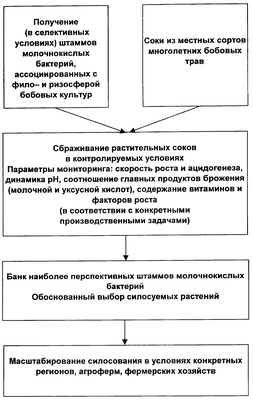 Известно [1], что качество корма, получаемого путем силосования (молочнокислого сбраживания) растительной массы, зависит от многих факторов – состава силосуемой массы, содержания ее компонентов, например сахаров, белков, минеральных веществ, а также от осмонапряженности и активной кислотности сбраживаемой массы. Кроме того, кормовые качества силоса зависят от эффективности процесса силосования, которая определяется ферментативной активностью бактерий – возбудителей молочнокислого брожения, адекватностью этих бактерий особенностям субстрата, например, химическому составу биомассы растений, а также содержанию сахаров и белков в конкретной растительной массе, используемой для силосования.