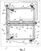 Согласно первому варианту изобретения (фиг.1 и 2) двухкоординатное сканирующее устройство 1 содержит вторую пару одинаковых параллельных между собой цилиндрических направляющих 22 и 23, оси соответственно 24 и 25 которых перпендикулярны осям 16 и 17 первой пары направляющих 12 и 13 и расположены в плоскости, параллельной плоскости, проходящей через оси 16 и 17. Концевые участки направляющих 12 и 13 первой пары жестко соединены с соответствующим каждому из них и расположенным сверху концевым участком одной из направляющих 22 и 23 второй пары с образованием прямоугольной рамы с противолежащими сторонами, расположенными на разных уровнях.