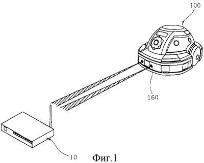 Источник 10 беспроводного сигнала по типу относится к устройствам передачи беспроводного сигнала. Например, он может представлять собой точку доступа, используемую в системах беспроводной связи, и входит в комплект поставки для подвижного робота 100. Предпочтительно, чтобы источник 10 беспроводного сигнала устанавливался по высоте на том же уровне, что и направленная антенна 160, чтобы облегчить обнаружение источника 10 беспроводного сигнала этой антенной, и упомянутый источник 10 беспроводного сигнала может представлять собой, например, зарядную стойку для подвижного робота 100. Источник 10 беспроводного сигнала в непрерывном или периодическом режиме излучает беспроводной сигнал в заранее определенной полосе частот.
